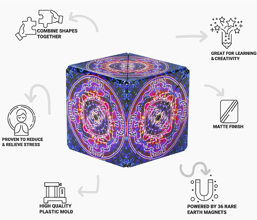 This PATENTED Award Winning mysterious magnetic puzzle box transforms into over 70 shapes with unique pattern touch!