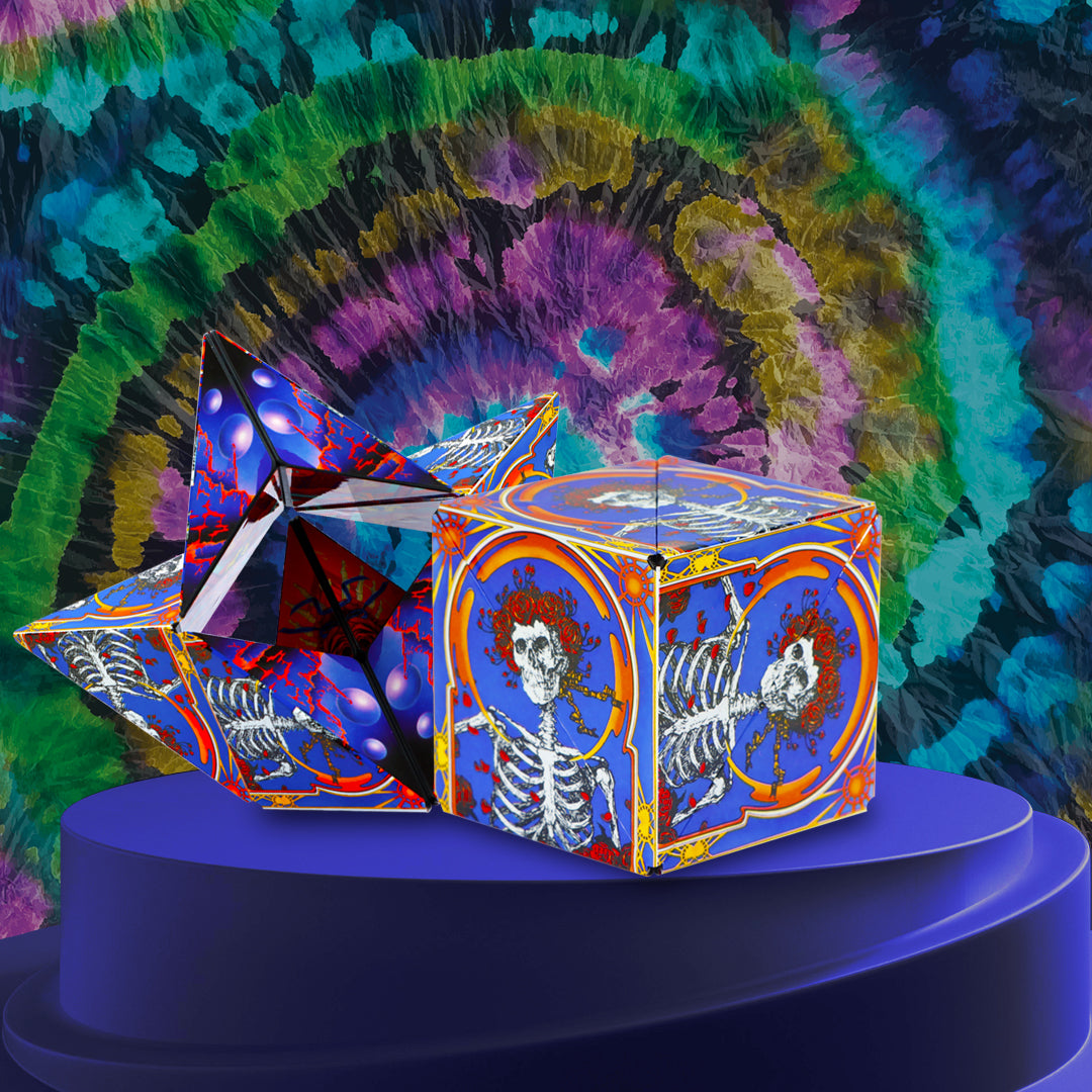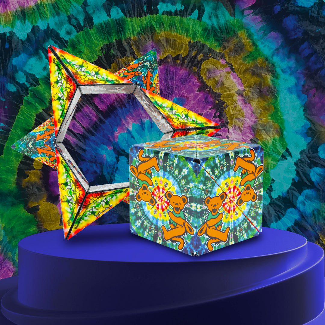 The Grateful Dead began as The Warlocks in 1965, but changed their name and moved to San Francisco’s low rent Haight-Ashbury district the next year, just as it was morphing into a hippie mecca for musicians and counterculture devotees. Their communal home at 710 Ashbury Street became the band’s headquarters and party central. The Dead’s funky blend of psychedelic blues, folk, rock and jazz amassed an eclectic cult following, and 1967’s “Summer of Love” launched the band onto the world stage. Open your cube and take a colorful trip back to their magical heyday.DANCING BEARS